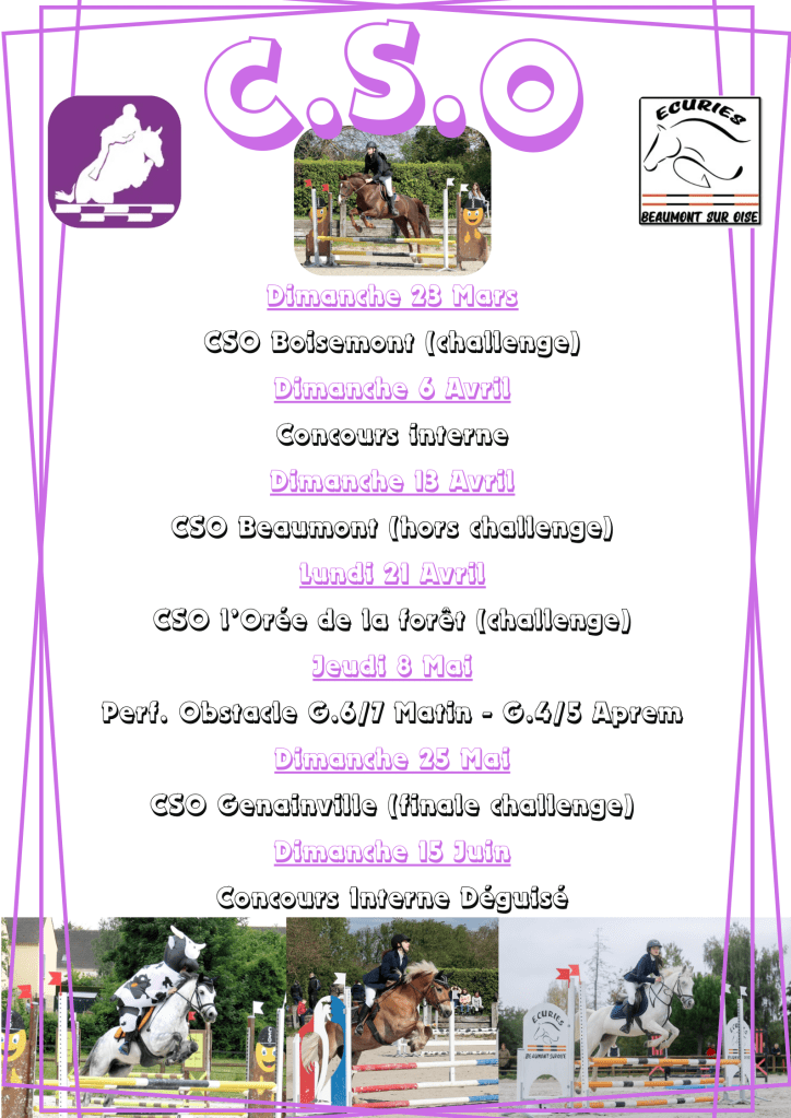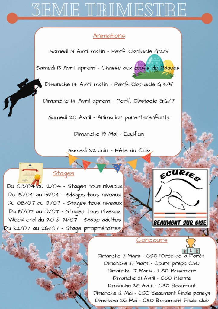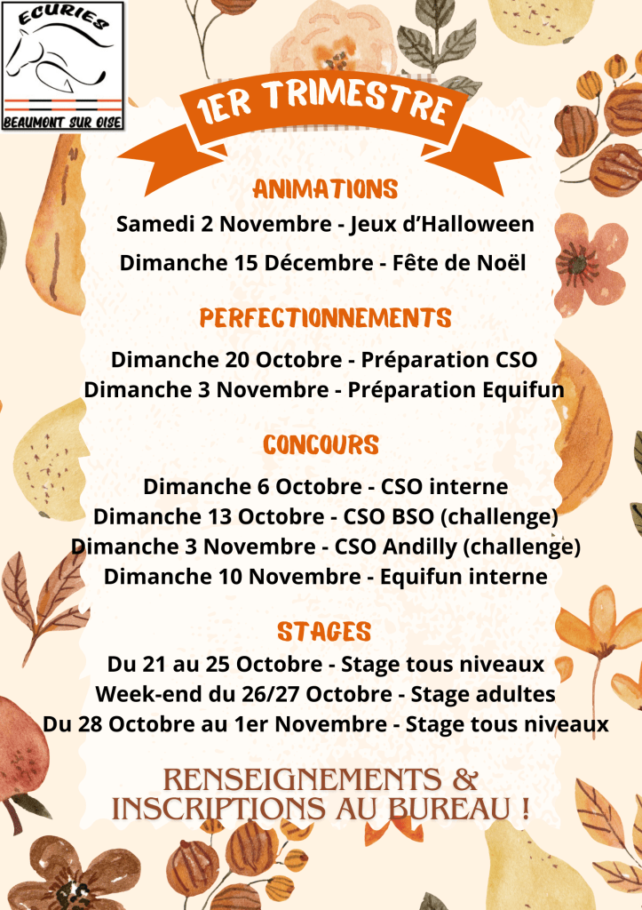 Nous vous proposons tout au long de l’année de nombreuses animations, des concours ainsi que des stages de l’initiation au perfectionnement. N’hésitez pas à consulter régulièrement le planning, inscriptions au bureau ou auprès de vos moniteurs.